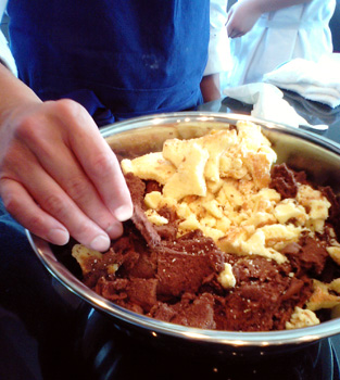 スポンジをほぐすシェフの指先がこれまた壮絶色っぽいです