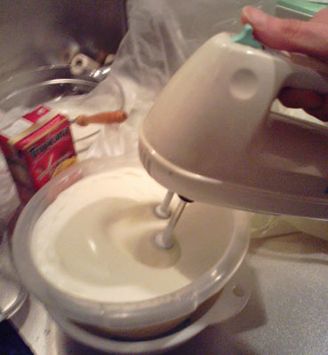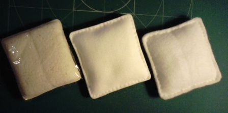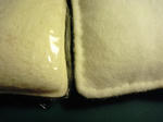 たまごサラダのかわりに木綿ワタをサンドし、縁を縫い閉じます