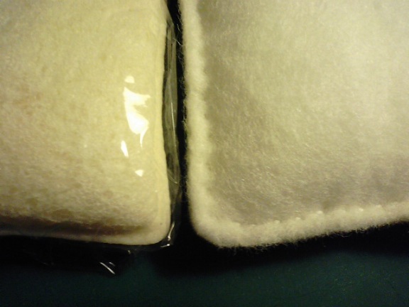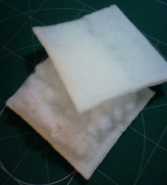 ふつうのフェルトと手芸用羊毛フェルト(表面の毛並みが粗いのでよりパンぽいかも)の